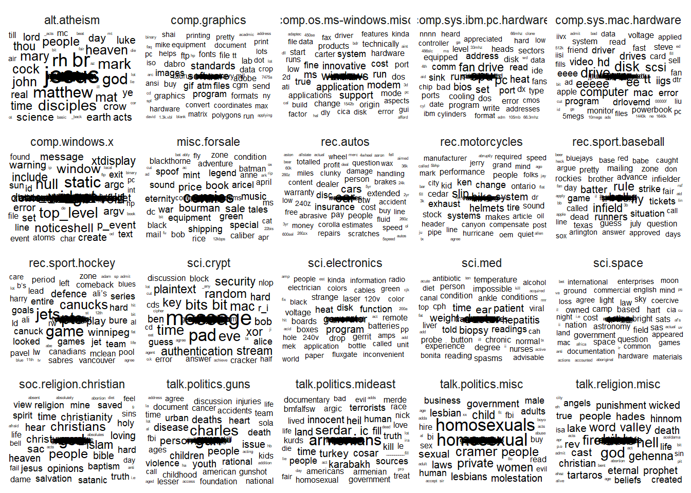 Word frequencies within newsgroup