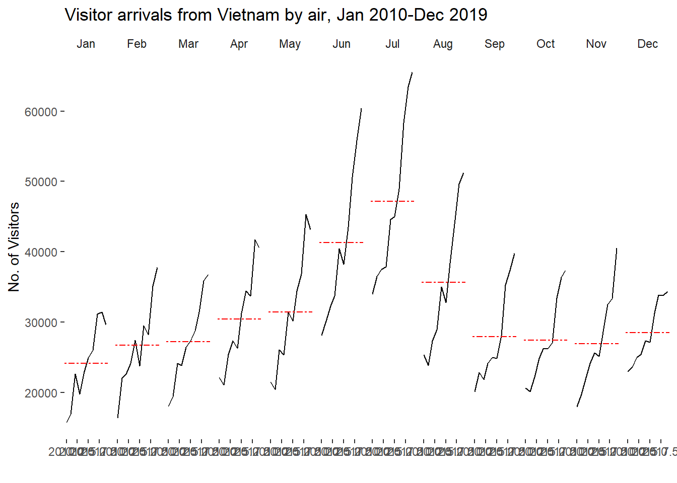 title = "Visitor arrivals from Vietnam by air, Jan 2010-Dec 2019") +