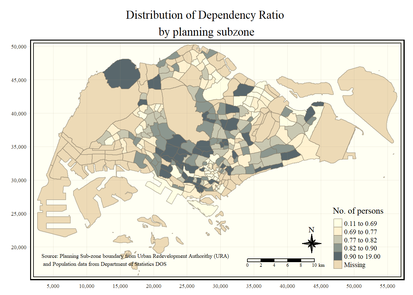 tm_layout(main.title = "Distribution of Dependency Ratio \nby planning subzone",